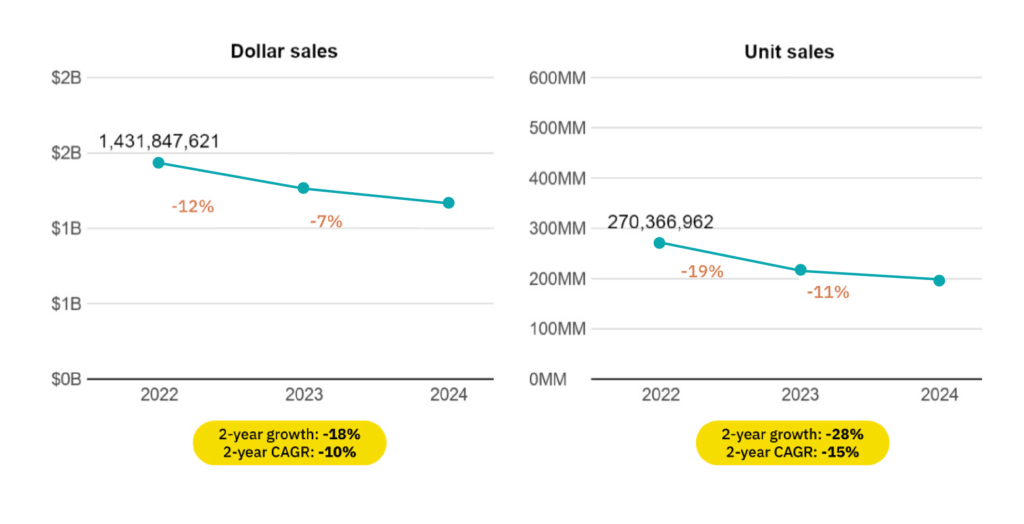 - Plant-based meat and seafood products were purchased by 13% of households in 2024, and 63% of them made multiple purchases within the category.