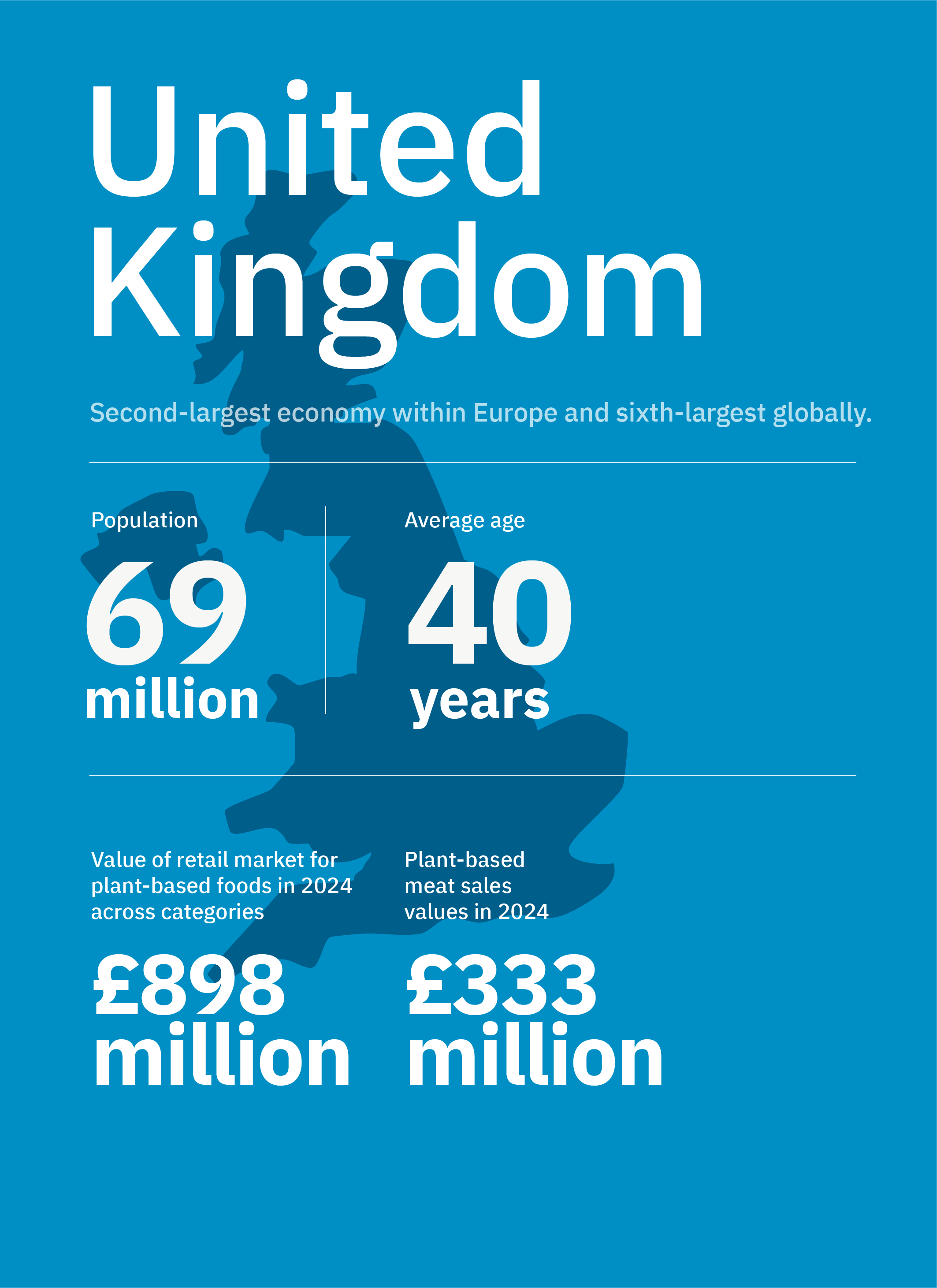 - The UK is the second largest market for plant-based alternatives in Europe, with the plant-based food segment valued at £898 million in 2024, of which plant-based meat accounts for £333 million.