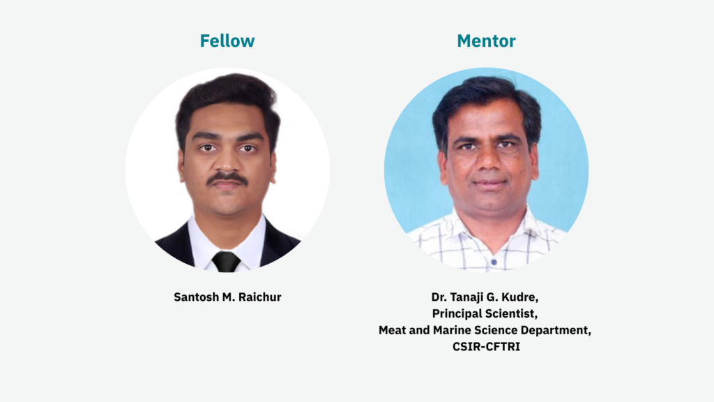 Dr. Tanaji G. Kudre, the mentor for this project, has over 15 years of research experience in food science and technology, with expertise spanning seafood chemistry and biochemistry, marine nutraceuticals and functional foods, and alternative protein innovation. His work includes developing value-added products from underutilised plant and marine resources, with a strong focus on scalable, industry-relevant food technologies.